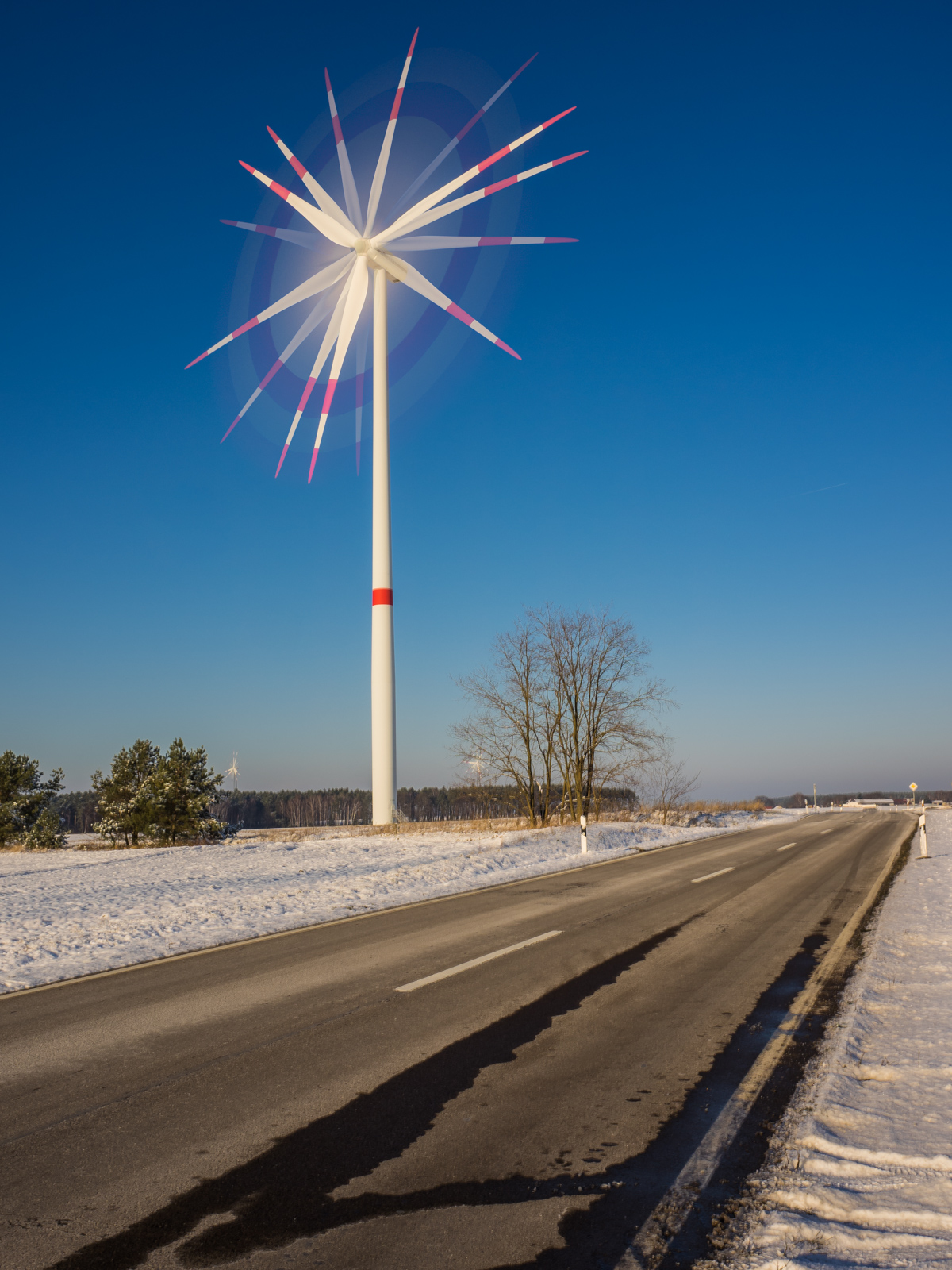 Ein Windrad mit Olympus "Live Composite" und 5x Doppelbelichtung fotografiert.