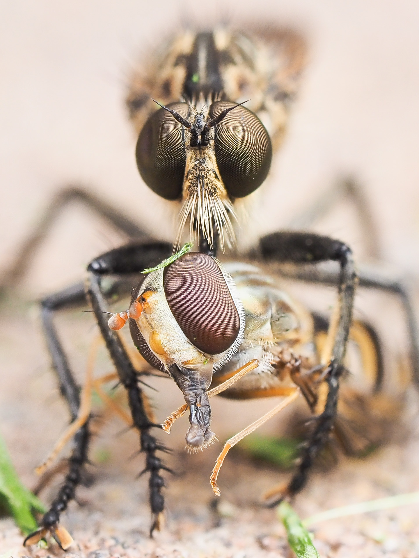 Eine Bremse erbeutet eine Fliege.