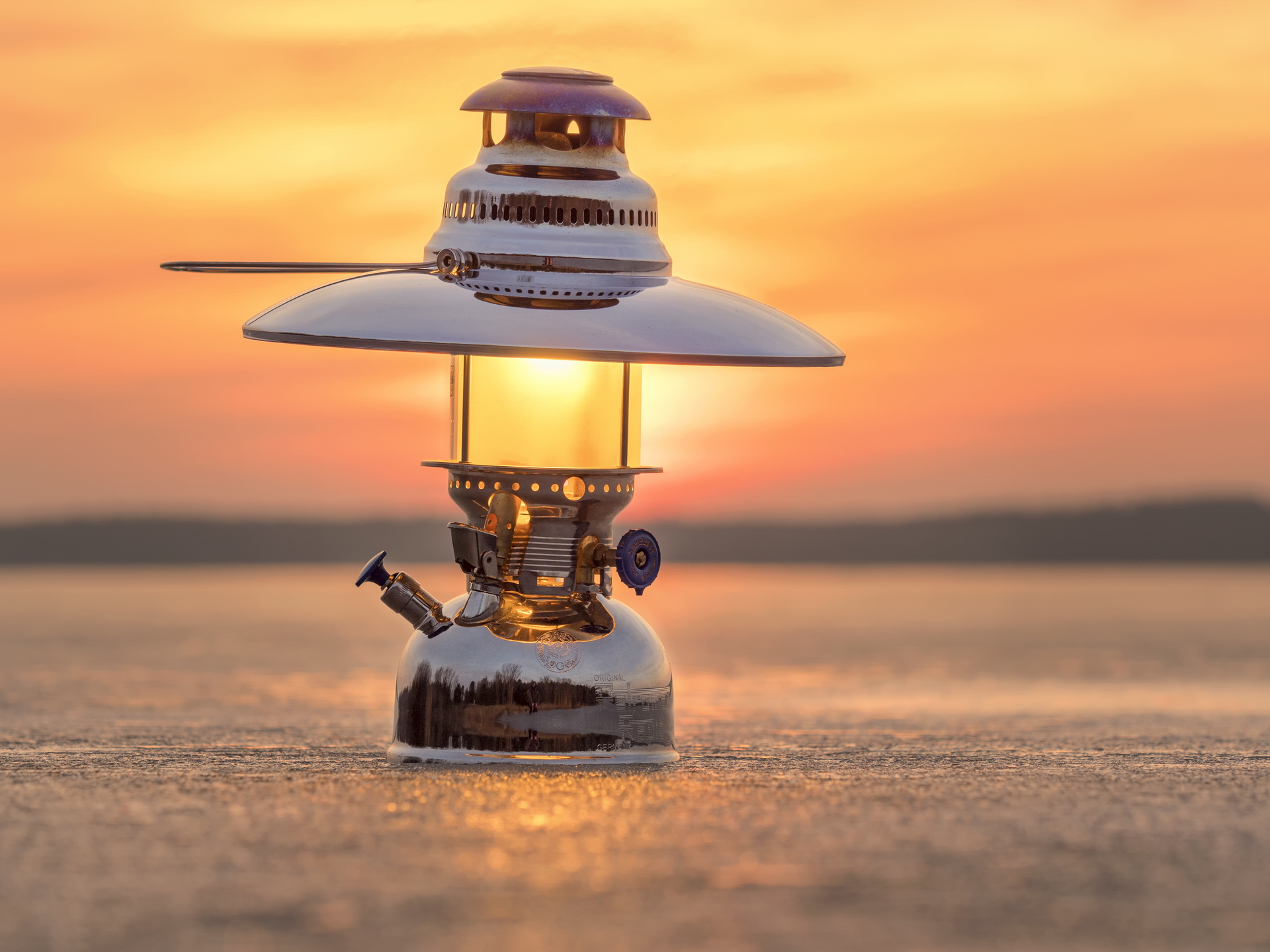 - Eis, HK500, kalt, Krisenvorsorge, Lampe, Leuchte, Licht, Natur, Notbeleuchtung, Petroleum, Petromax, See, Sonnenuntergang, Starklichtlampe, Stimmung, warm