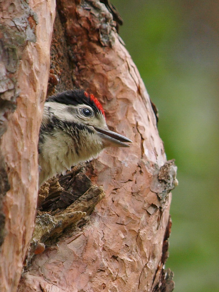 Neugierig schaut das fast flügge Jungtier aus der Bruthöhle. Es gibt so viel zu entdecken in dieser weiten Welt.