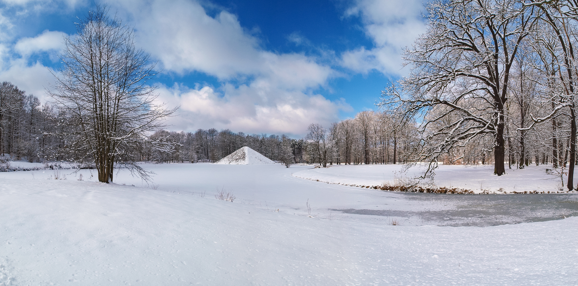 - Branitz, Cottbus, Fürst, Panorama, Park, Pückler, Pyramide, Schnee, Seepyramide, Winter