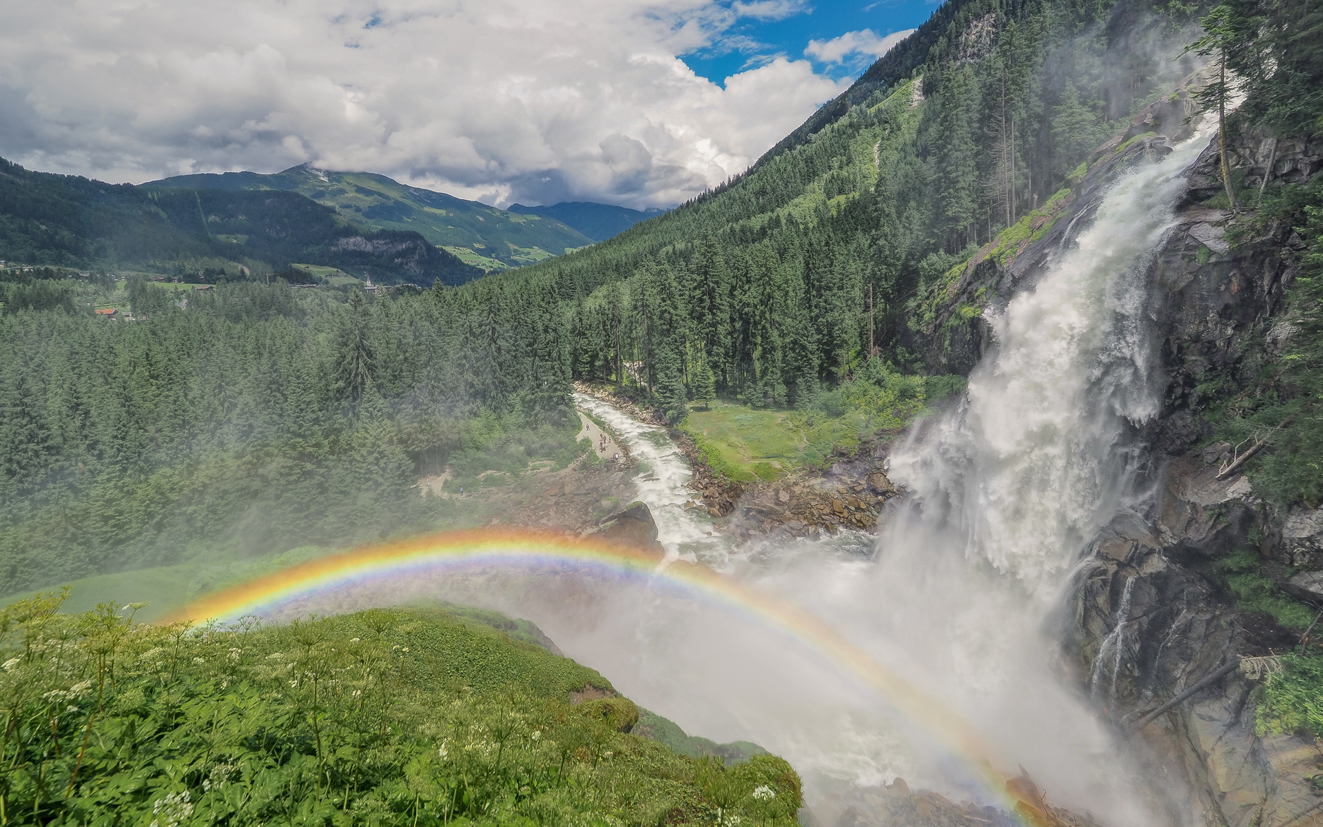 - Alpen, Gletscherbach, Krimml, Krimmler Ache, Krimmler Wasserfälle, Nationalpark Hohe Tauern, Naturschauspiel, Österreich, Pinzgau, Regenbogen, Salzburger Land, Wandern, Wasser, Wasserfall