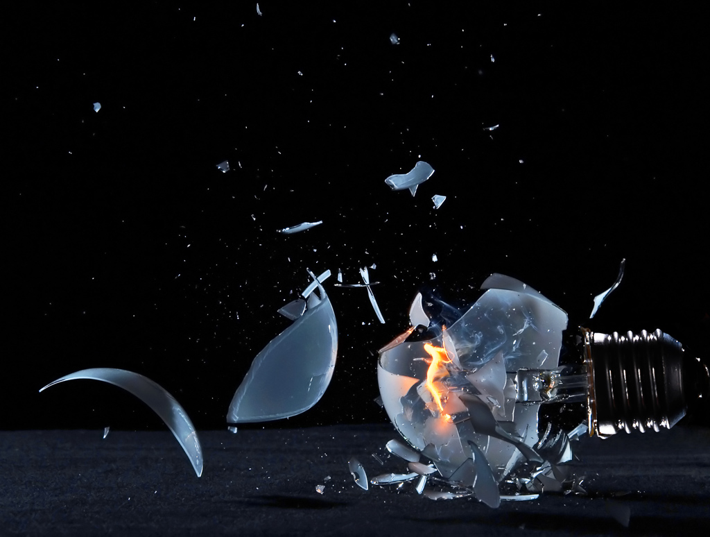 Birne, Burnout, Defekt, Experiment, Glühbirne, Glühlampe, Rauch, Dampf, Wolfram, Geist der Lampe, Glaskolben