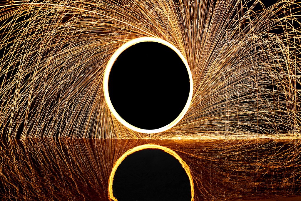 Experiment, Feuer, Kreis, Poi, Spremberg, Stausee, kreisen, schwenken, drehen, Funkenregen, Funken