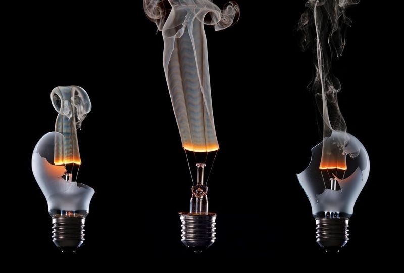 Birne, Burnout, Defekt, Experiment, Glühbirne, Glühlampe, Rauch, Dampf, Wolfram, Geist der Lampe