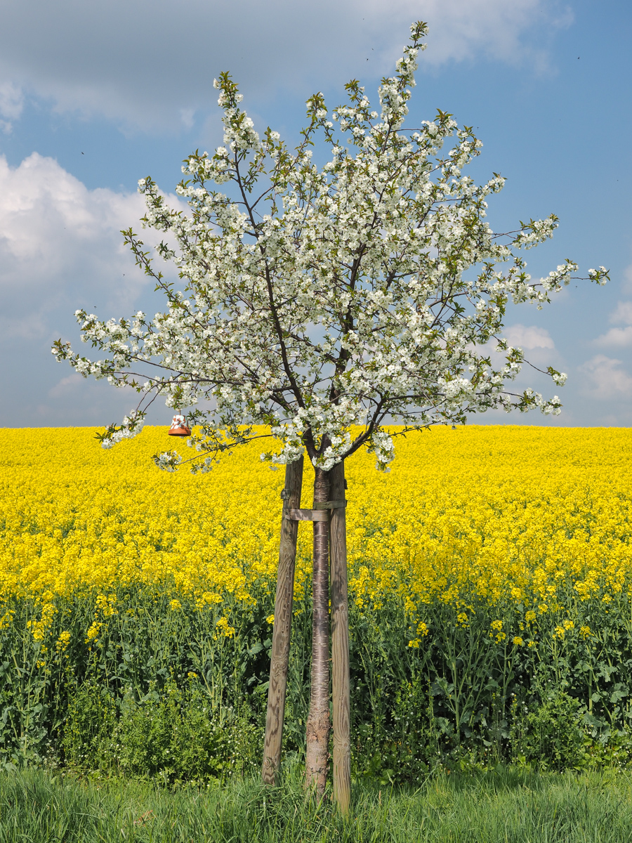- Blüte, Frühling, gelb, Landschaft, Landwirtschaft, Obstbäume, Raps