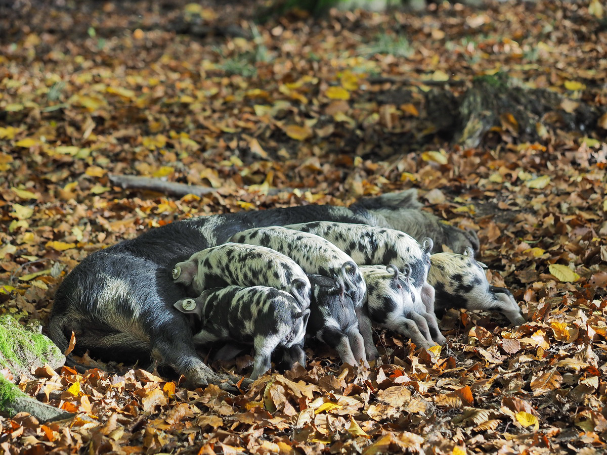 Turopolje Schweine, ursprünglicher Lebensort ist Kroatien. Turopolje ist eine Region in Kroatien, welche sich zwischen Zagreb und Sisag befindet. Durch den Krieg 1993 wurden die Tiere nahezu ausgerottet. Einige wenige reinrassige Exemplare gelangten zur Nachzucht in den Zoo nach Schönbrunn/Österreich. 1995 gelang eine erste erfolgreiche Nachzucht. Mittlerweile gilt die Population als stabil. Die Aufnahmen habe ich im Wildpark Ivenack/Mecklenburg Vorpommern, gemacht. (siehe GPS Daten oben rechts im Kartenlink)