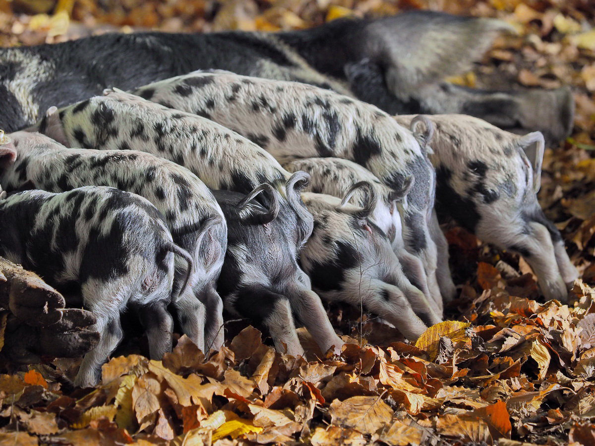 Turopolje Schweine, ursprünglicher Lebensort ist Kroatien. Turopolje ist eine Region in Kroatien, welche sich zwischen Zagreb und Sisag befindet. Durch den Krieg 1993 wurden die Tiere nahezu ausgerottet. Einige wenige reinrassige Exemplare gelangten zur Nachzucht in den Zoo nach Schönbrunn/Österreich. 1995 gelang eine erste erfolgreiche Nachzucht. Mittlerweile gilt die Population als stabil. Die Aufnahmen habe ich im Wildpark Ivenack/Mecklenburg Vorpommern, gemacht. (siehe GPS Daten oben rechts im Kartenlink)