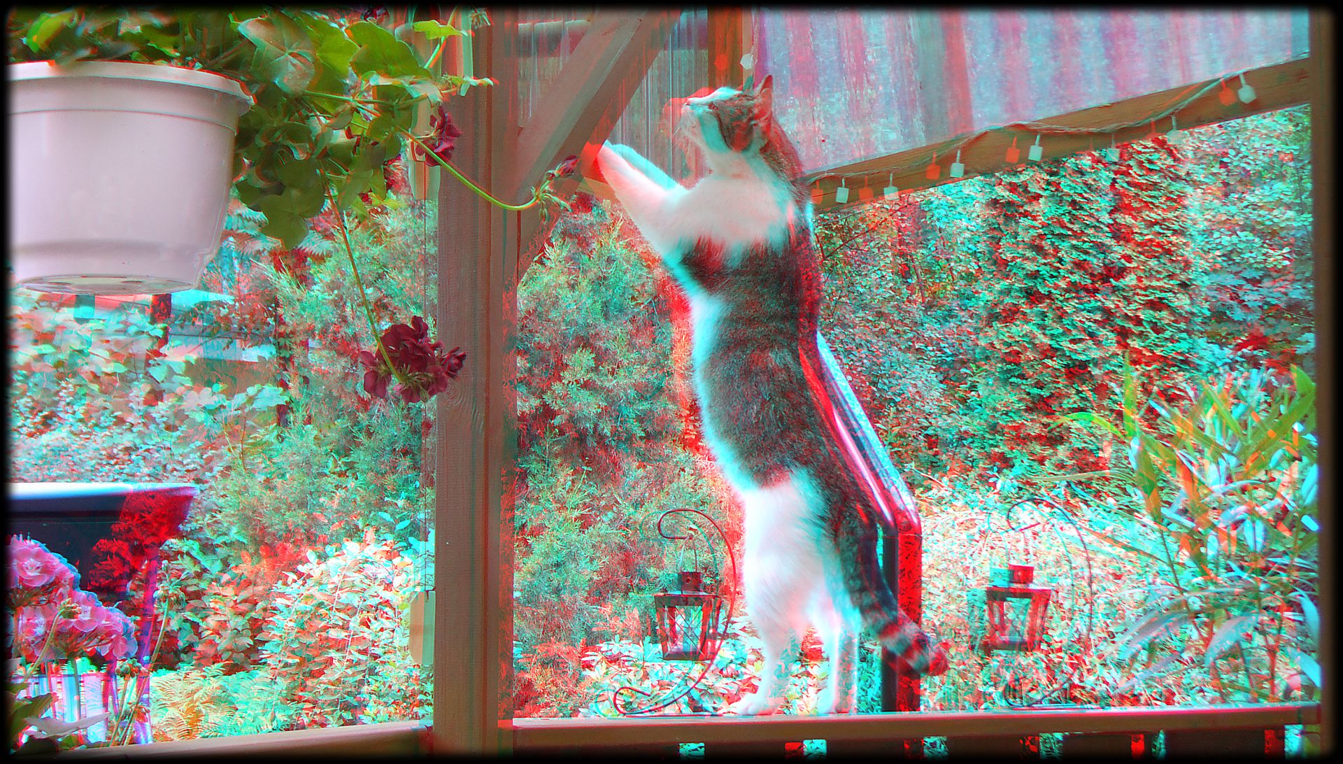 - 3D, Anaglyphen, Fuji Real 3D W3, Kater, Katze, neugierig, Stereo, verspielt