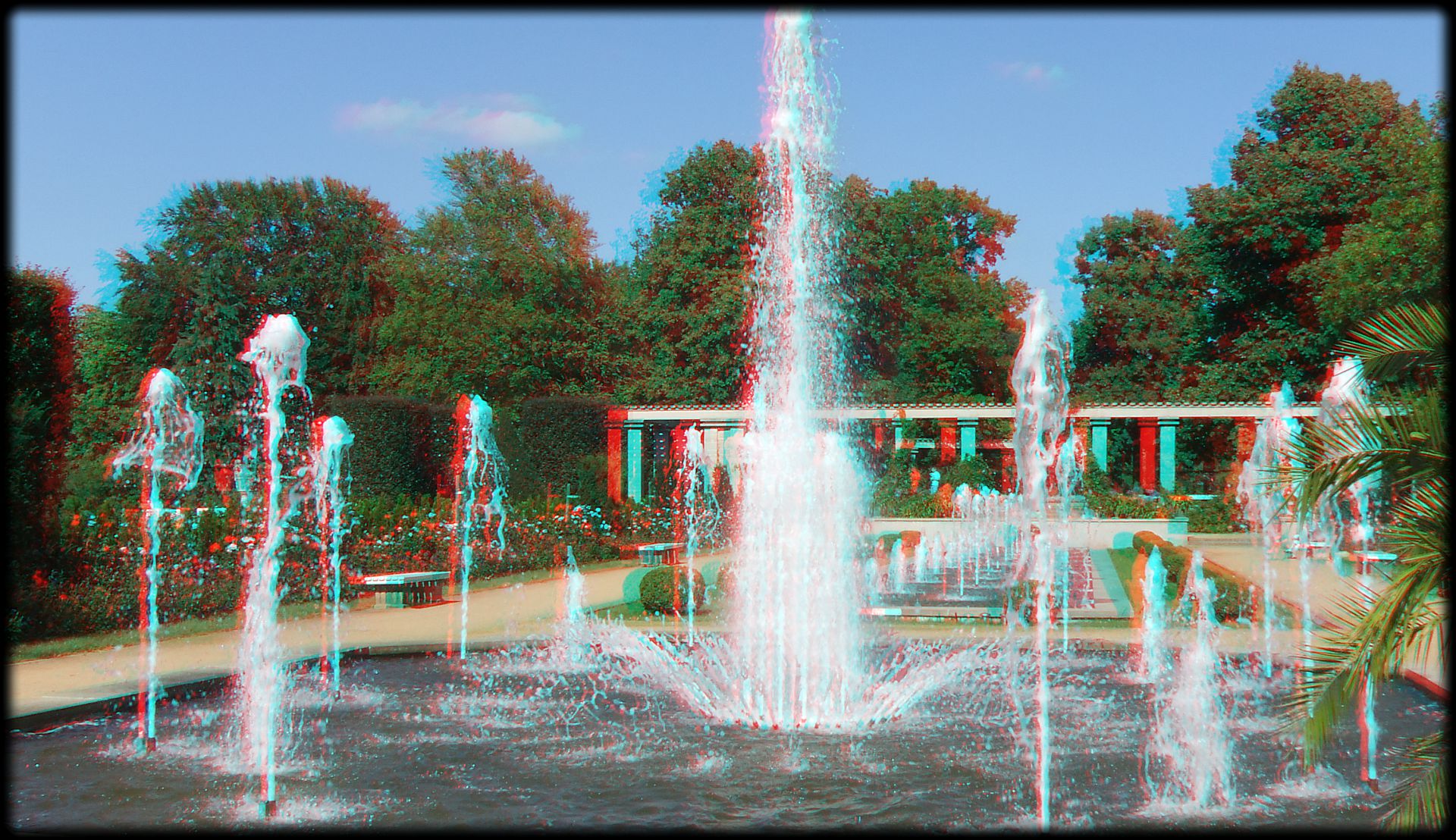 - 3D, Anaglyphen, Forst, Fuji Real 3D W3, Rosengarten, Springbrunnen, Stereo