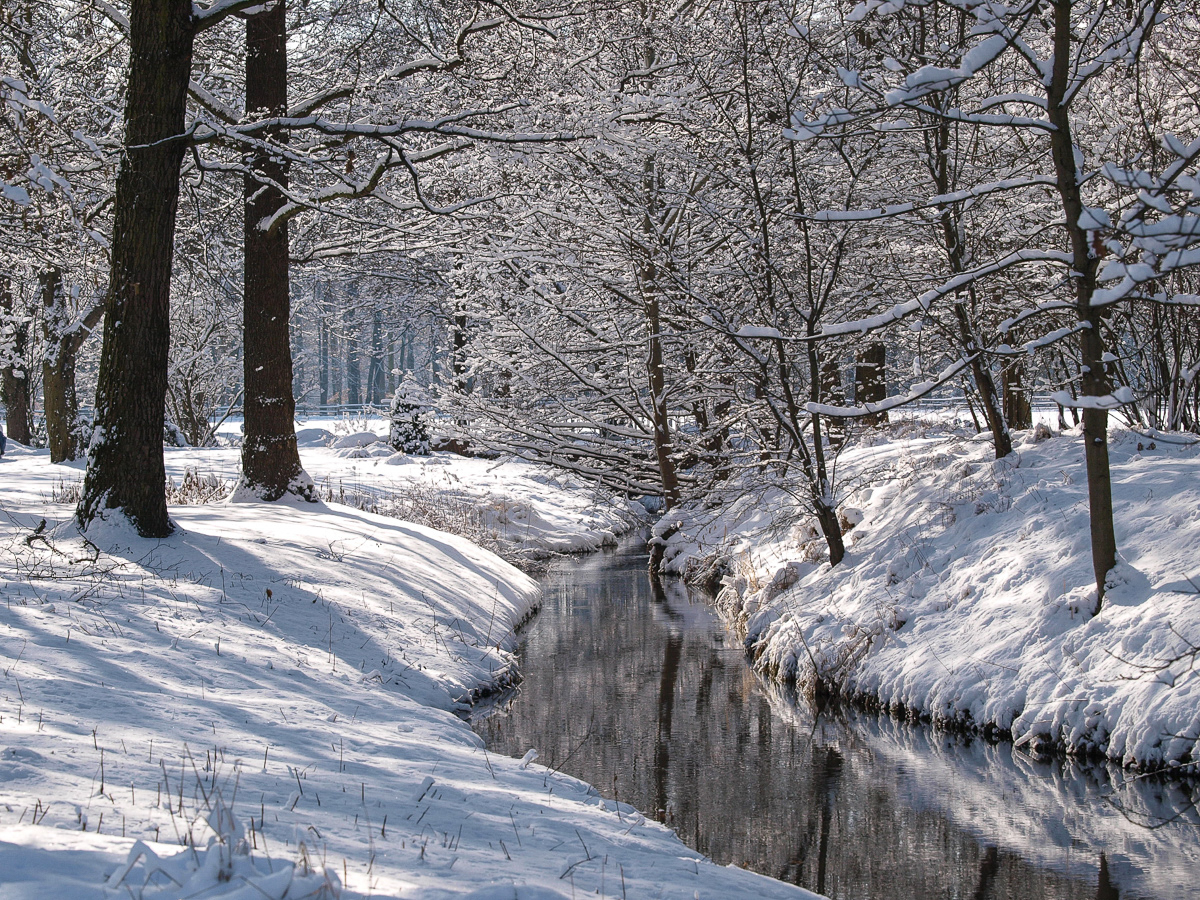Bach , Branitz , BuGa , Cottbus , Schnee , Spreeauenpark , Wasser , weiß , Winter