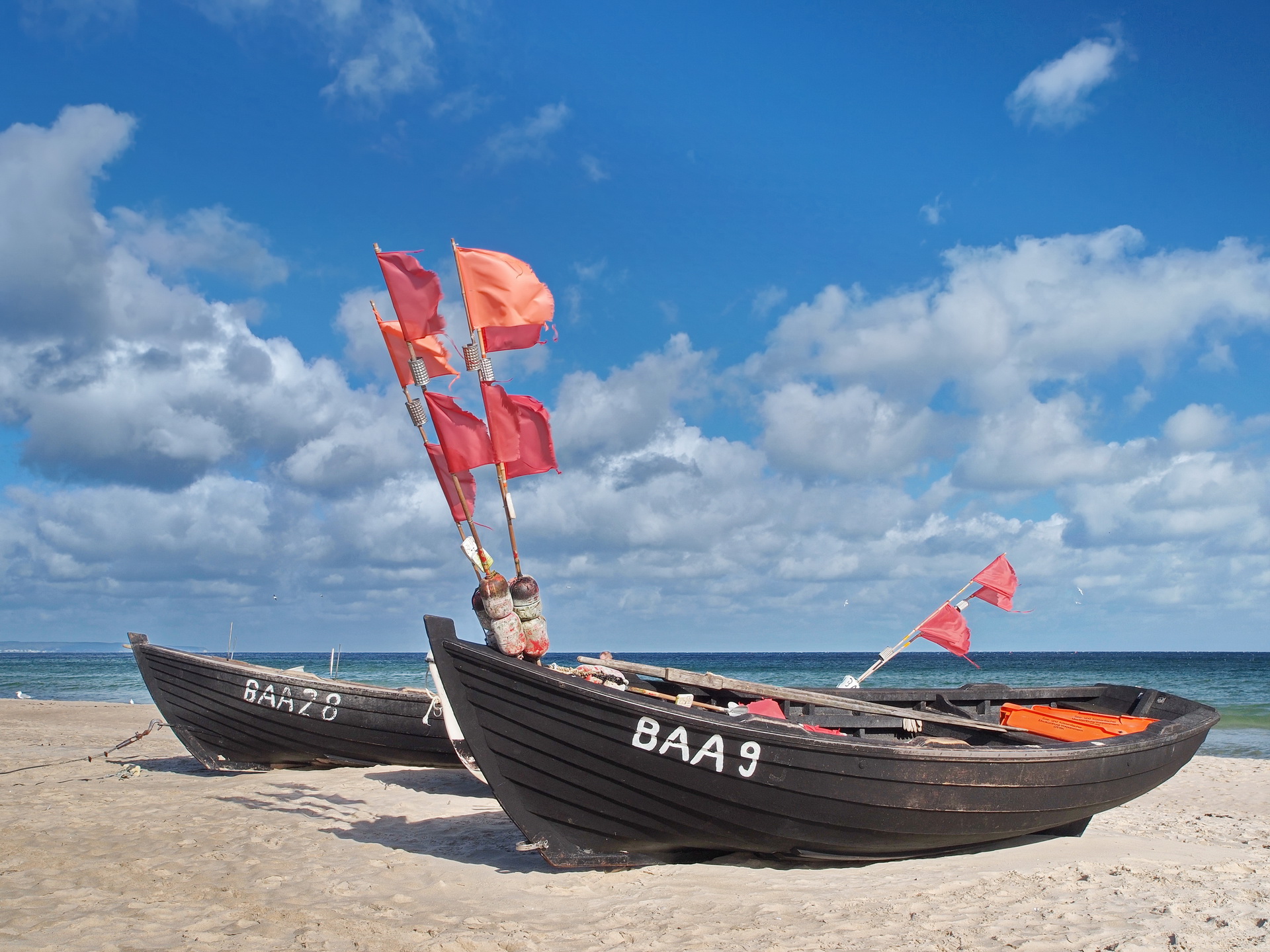 Typisches Bild vom Ostsee Strand bei Baabe. 2 Fischerboote.