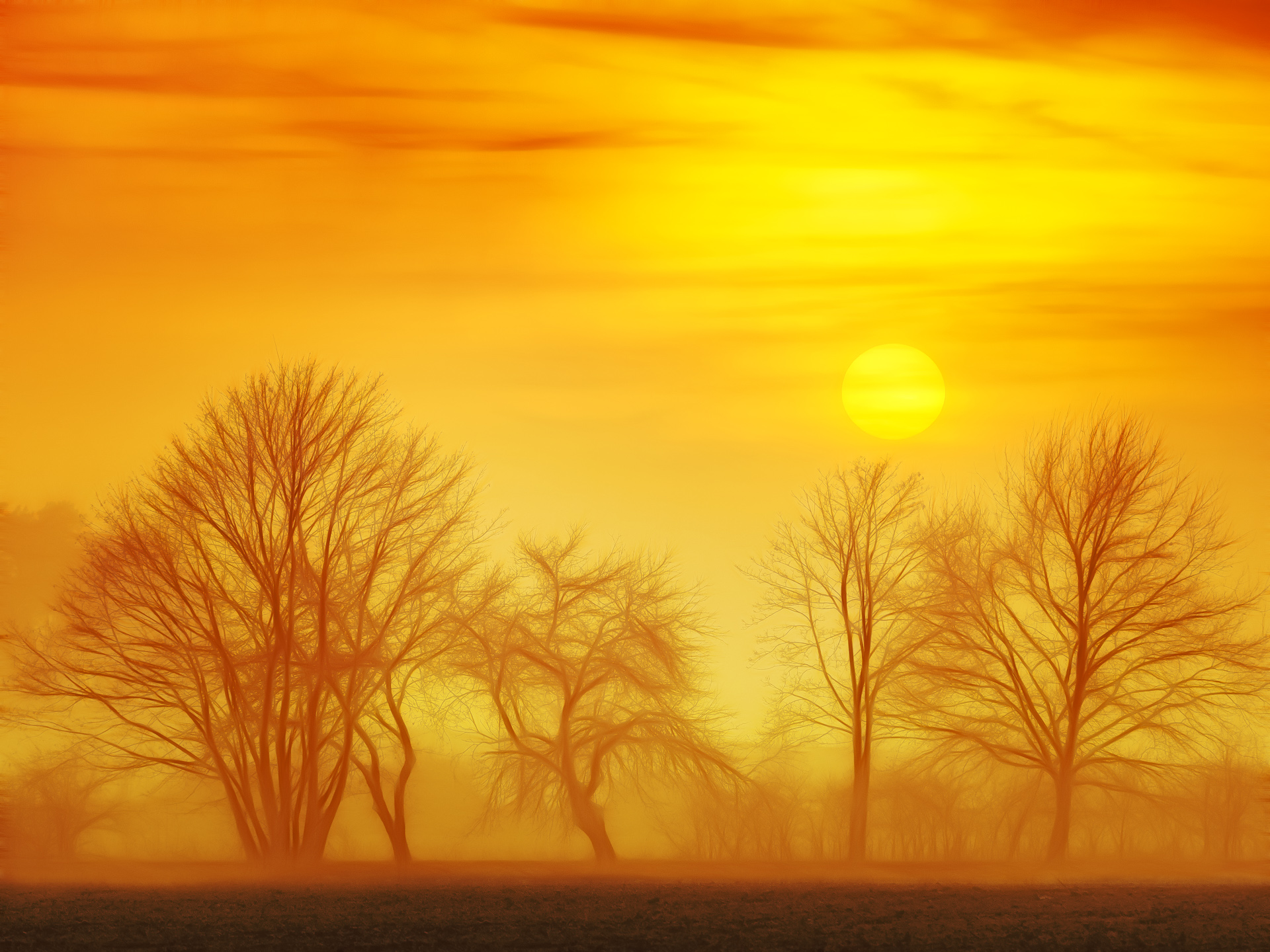 Bäume, Feld, Herbst, mystisch, Sonne, Stimmung
