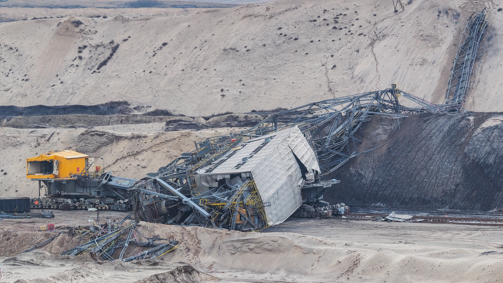 - Abraumförderbrücke, Abriss, Brandenburg, Braunkohle, Cottbus, Demontage, Energie, F34, Nord, Raubbau, Sprengung, Strom, Tagebau, Umwelt, Vattenfall, Zerstörung